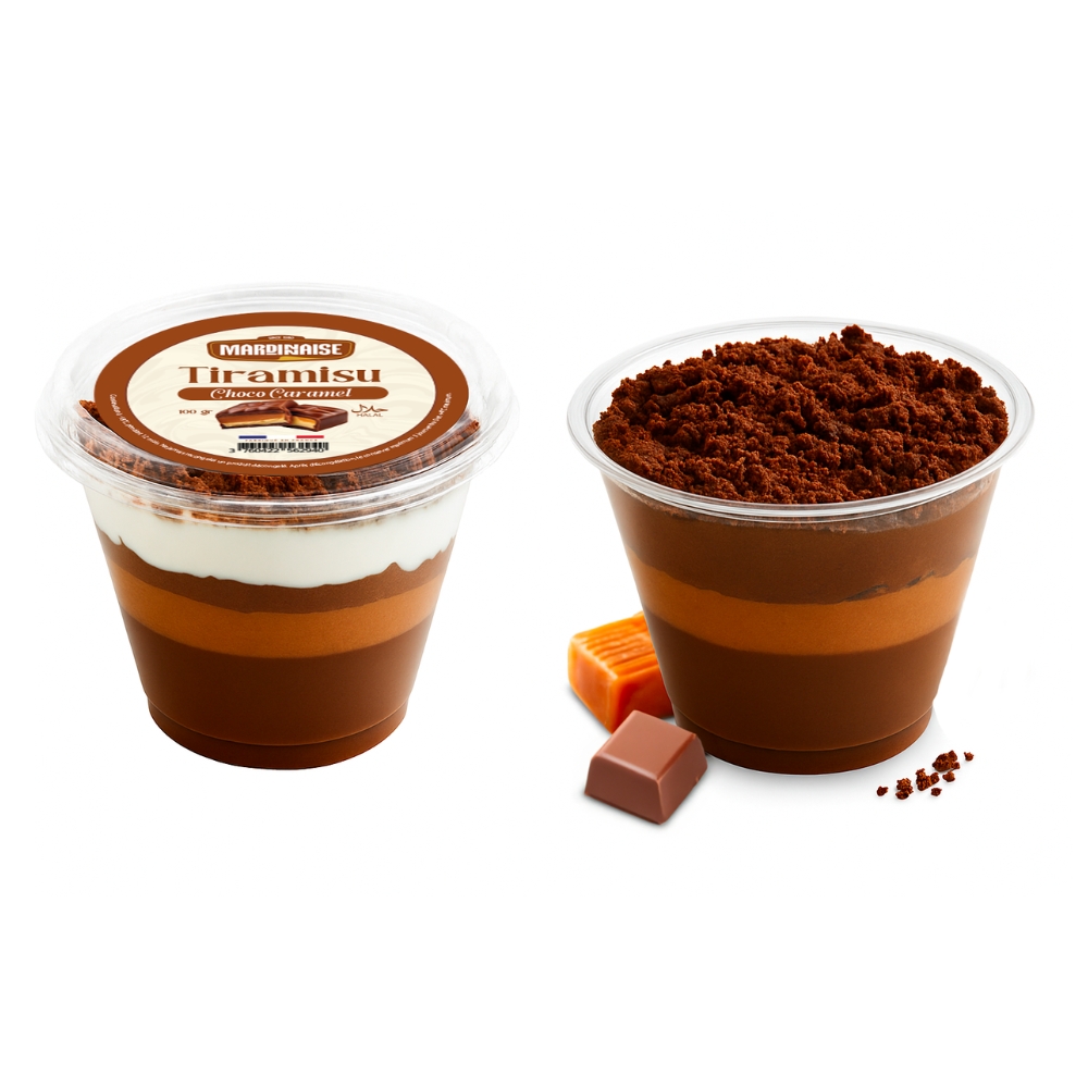 Ingrédients : Préparation de crème fouettée UHT non laitière [eau, matière grasse végétale (huile de palmiste), sucre, émulsifiants: E472e végétal, lécithine de SOJA, E472b végétal, sorbitol, protéine de lait, cellulose (E460), carboxyméthylcellulose (E466), carbonate de calcium (E170), gomme de caroube (E410), phosphate de sodium (E339), arôme vanille (origine: Bulgarie], biscuits à la cuillère (14,85%) [farine de BLÉ, sucre, OEUFS 26%, poudres à lever (hydrogénocarbonate d’ammonium, sodium hydrogénocarbonate), arômes naturels, sel), arômes naturels], sauce caramel au lait (13,61%) [sirop de glucose-fructose, eau, sucre, amidon modifié, huile végétale (palme), écrémé lait en poudre (2%), sirop de caramel (2%), sucre caramélisé (1,5%), stabilisants (E460), (E466), E471) , sel iodé, acide tartrique, arômes, carbonate de calcium, conservateur (E202)], grains de caramel croquant avec chocolat au lait (9,90%) [Sucre, huile de palme, beurre de cacao, pâte de cacao, lactosérum en poudre (de LAIT), LAIT écrémé en poudre, AMANDES (2,5%), BEURRE concentré, perméat de lactosérum (de LAIT), LAIT écrémé concentré sucré, sel, émulsifiant (lécithines de SOJA), arômes. cacao: 30 % minimum dans le chocolat au lait.], OEUF entier, sucre, mascarpone (5,57%) [crème de lait pasteurisée, LAIT, correcteur d’acidité: acide lactique (origine: Italie)], eau, sucre vanilliné, blanc d’OEUF en poudre, épaississant (E415).
